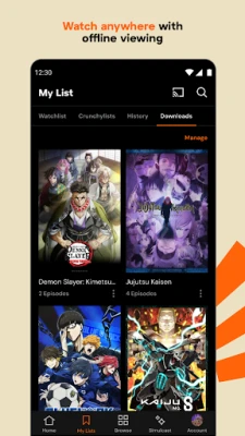 „Crunchyroll" leidžia žiūrėti populiariausią ir geriausiai įvertintą anime bet kur ir bet kada. Transliuokite naujus epizodus, klasikinius favoritus ir filmus. Mėgaukitės didžiausia anime kolekcija internete be reklamų, aukšta kokybe. Pasiekite tūkstančius išskirtinių muzikinių klipų ir koncertų, su subtitrais ar dubliažu.