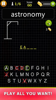 Mėgaukitės nuostabiu ir sudėtingu „Hangman" žaidimu, kuris tikrai patikrins jūsų išmintį ir intuiciją. Pasinerkite į žodžių galvosūkių pasaulį, kuriame kiekvienas spėjimas veda prie pergalės arba įkalina jus. Azartas ir protingi sprendimai garantuoti.