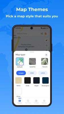 Siekdami maksimaliai patenkinti vartotojų poreikius, „My GPS Coordinates & Tracker" siūlo platų žemėlapių stilių pasirinkimą: nuo klasikinio „Standartinio" ir reljefą pabrėžiančio „Tereno", iki stilingų „Retro", „Tamsaus", „Nakties", „Baklažano" ir „Sidabrinio" variantų, kurie pritaikyti skirtingoms estetinėms preferencijoms ir apšvietimo sąlygoms. Ši programa yra idealus pasirinkimas žygeiviams, keliautojams ir lauko pramogų mėgėjams, kuriems reikalingas patikimas vietos sekimas. Ji taip pat nepakeičiama profesionalams, dirbantiems su įvairiais koordinatės formatais. Atraskite pasaulį, žinodami, kad visada turite tikslią informaciją apie savo buvimo vietą, saugiai ir patogiai, su vieninteliu įrankiu, kuris prisitaiko prie jūsų poreikių.