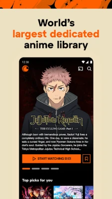 „Crunchyroll" leidžia žiūrėti populiariausią ir geriausiai įvertintą anime bet kur ir bet kada. Transliuokite naujus epizodus, klasikinius favoritus ir filmus. Mėgaukitės didžiausia anime kolekcija internete be reklamų, aukšta kokybe. Pasiekite tūkstančius išskirtinių muzikinių klipų ir koncertų, su subtitrais ar dubliažu.