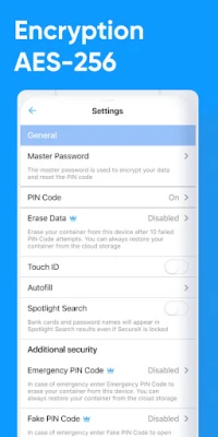 E Wallet saugumas – absoliutus prioritetas. Jūsų duomenys apsaugoti pažangiausiu AES-256 bitų šifravimu. Svarbiausia, kad šifravimo raktas sukuriamas ir saugomas tik jūsų įrenginyje, užtikrinant, kad niekas kitas, net ir mes, negalėtų pasiekti jūsų konfidencialios informacijos. Visi duomenys lieka jūsų įrenginyje arba yra saugomi užšifruoti jūsų asmeninėje debesų saugykloje, pavyzdžiui, „Google Drive" ar „Dropbox". Jums nereikės jaudintis dėl jokios registracijos – tiesiog naudokite E Wallet, o interneto ryšys nėra būtinas. Jūsų duomenys visada su jumis: namie, užsienyje ar net lėktuve.