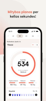 Nustatyti savo kelią lengva ir intuityvu. Tiesiog nurodykite savo mitybos tikslą, galimus maisto netoleravimus ar produktus, kurių nemėgstate, ir leiskite programai dirbti. Akimirksniu gausite lankstų asmeninį planą su keičiamais receptais kiekvienam dienos valgiui – pusryčiams, pietums, vakarienei ir užkandžiams. Be to, kadangi branginame Jūsų laiką ir norime padėti išvengti maisto švaistymo, aplikacija automatiškai sugeneruos išmanų pirkinių sąrašą pasirinktai savaitei, apimantį tik tas prekes, kurių Jums prireiks. Ir dar daugiau – integruota dirbtinio intelekto funkcija leidžia atpažinti kalorijas iš nuotraukų, dar labiau palengvinant Jūsų mitybos stebėjimą.