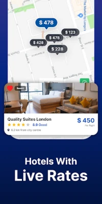 Be puikių kainų, ši programėlė išsiskiria ir išplėstinėmis paieškos funkcijomis. Lengvai suraskite viešbučius ar motelius šalia dabartinės jūsų buvimo vietos, užtikrindami greitą ir patogų apgyvendinimą, kai tik jo prireikia. Jūsų ramybė yra mūsų prioritetas – visi per programėlę teikiami pasiūlymai yra saugūs ir patikimi, su ATOL ir ABTA apsauga pasirinktiems paslaugų teikėjams. Mėgaukitės galimybe palyginti pasiūlymus iš populiarių platformų, tokių kaip vrbo vacation rentals ir hotels.com, viską vienoje vietoje, ir rinkitės drąsiai, žinodami, kad jūsų kelionės planai yra apsaugoti.